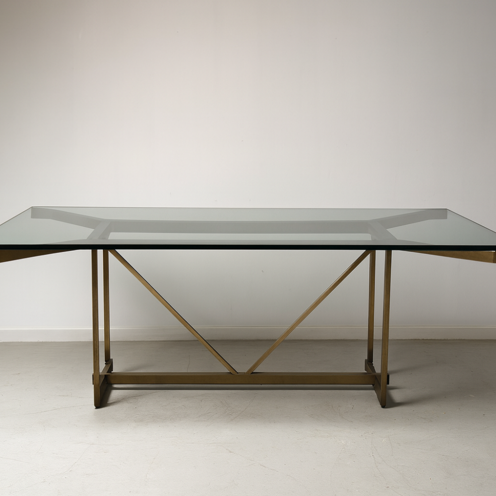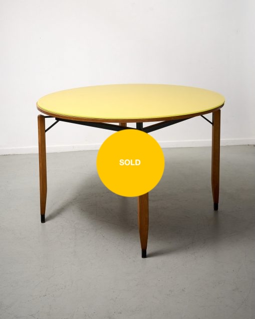 Roberto Aloi yellow glass top and wood architectural legs dining table