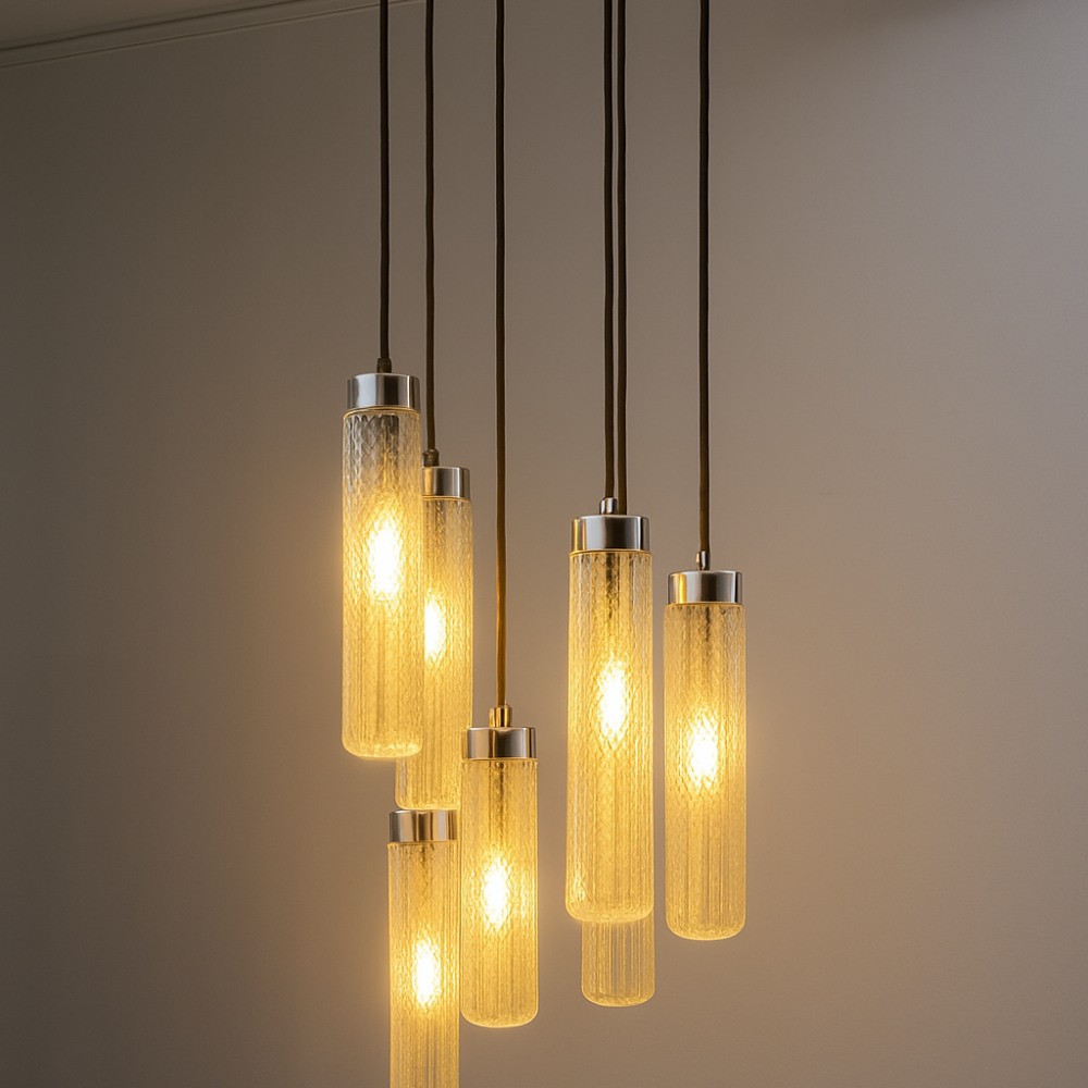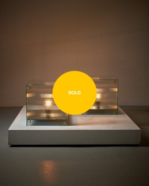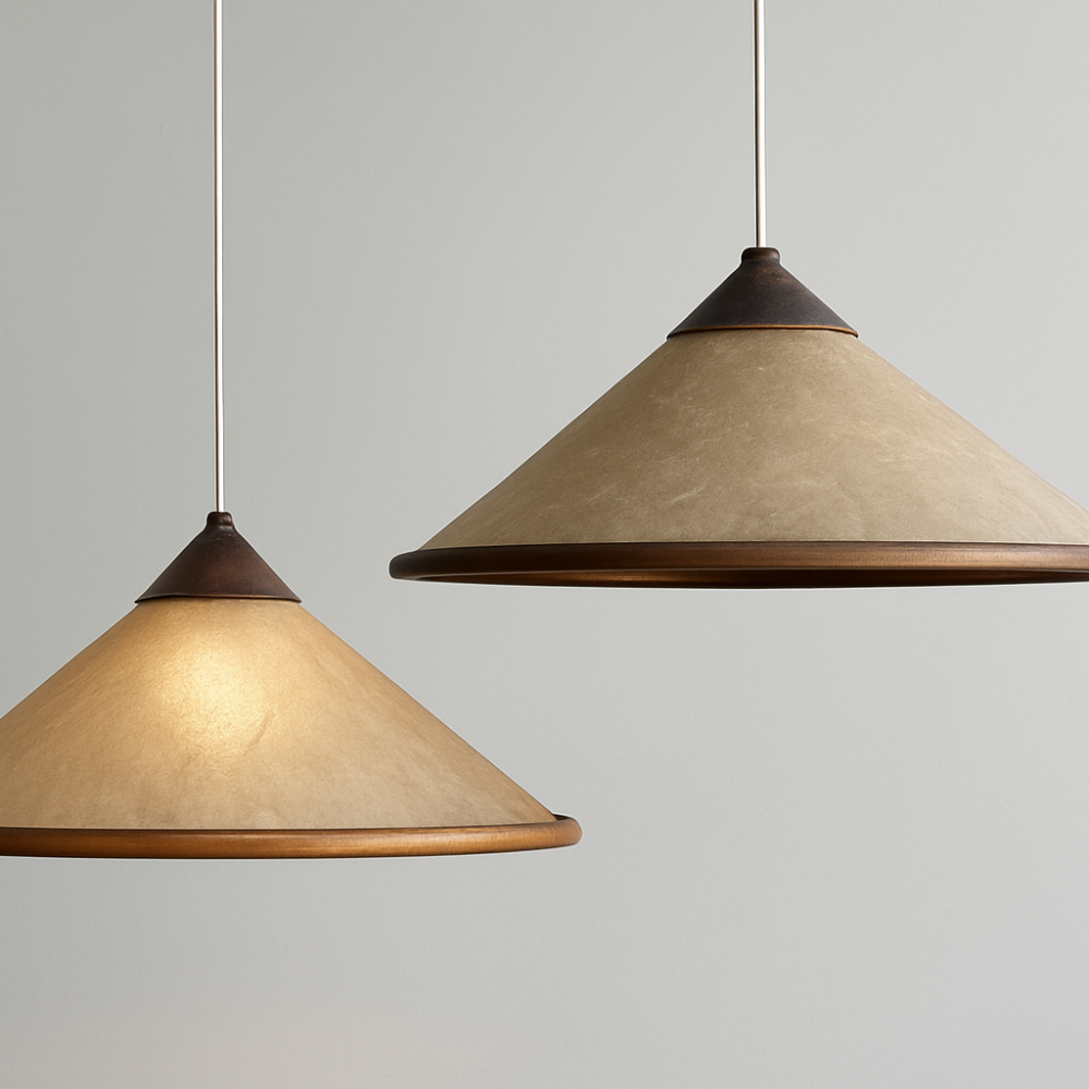 Pair of Giovanni Offredi fiberglass and wood ceiling lamps