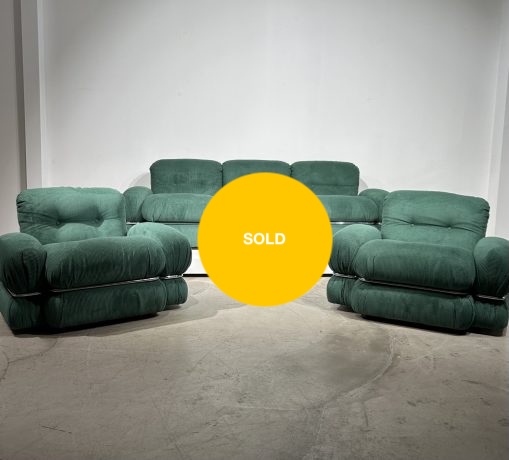 Set of green corduroy sofa and easy chairs by Piazzesi