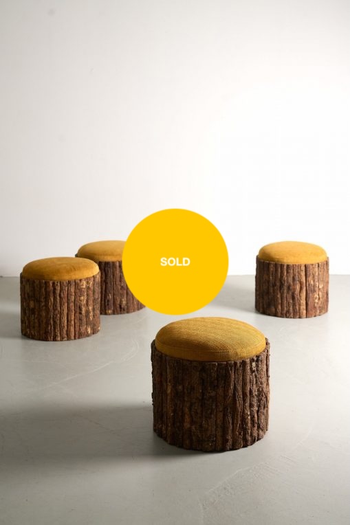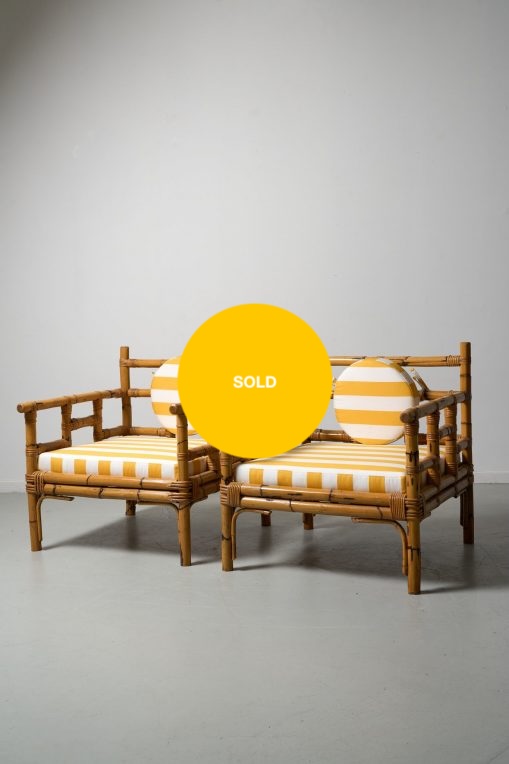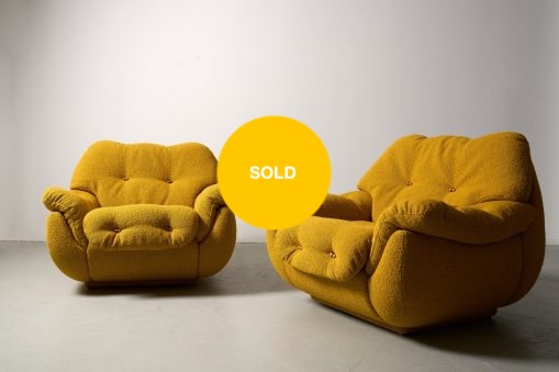 Pair of yellow fabric and wood buttons Italian easy chairs