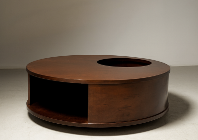 Italian round wood coffee table with compartment