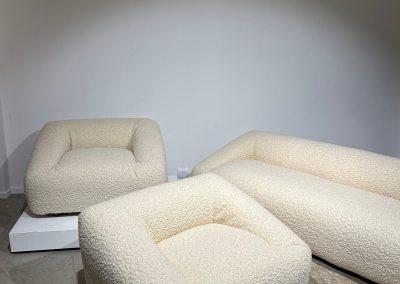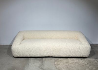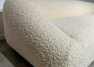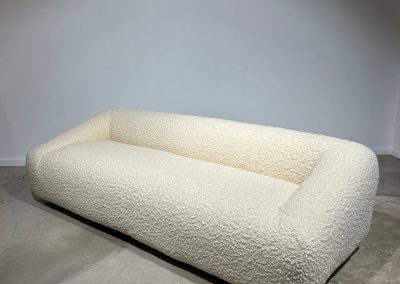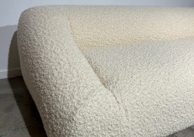 Large Italian sofa from 60’s with a new white bouclette fabric. 60’s