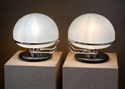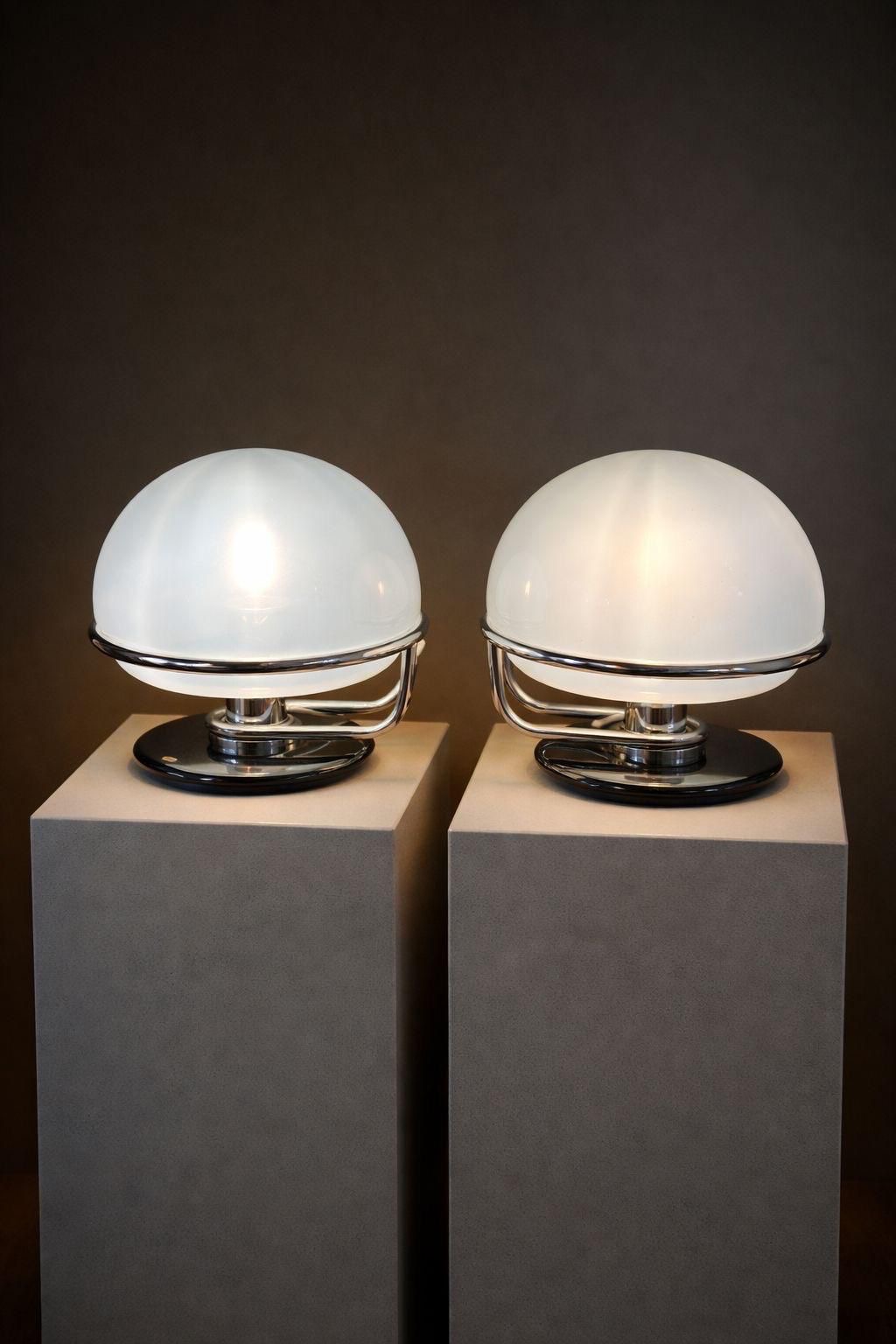 Pair of opaline and chrome table lamps