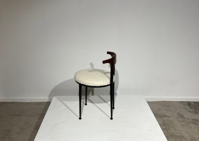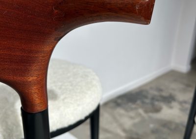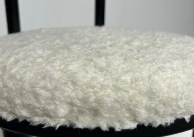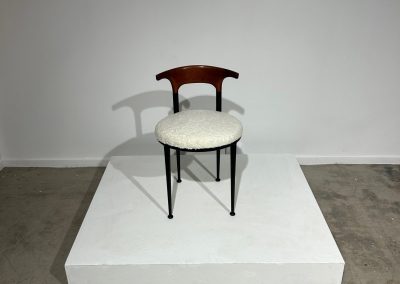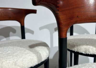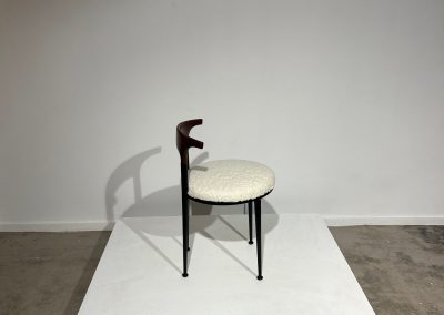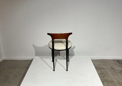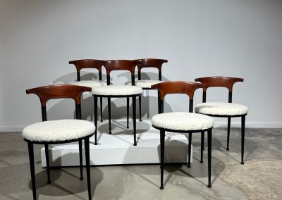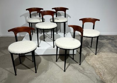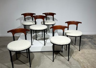 Set of 6 curved metal, wood & white soft fabric chairs