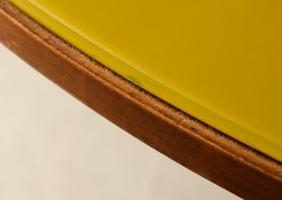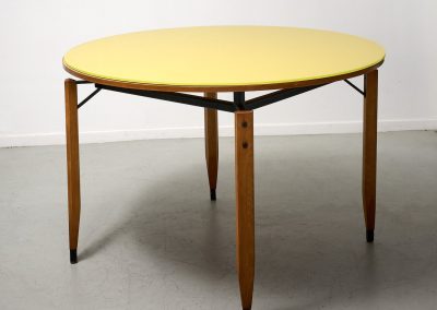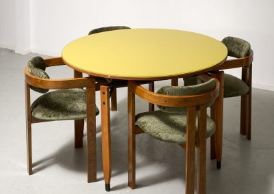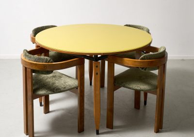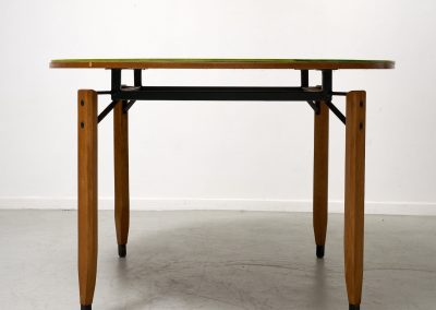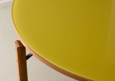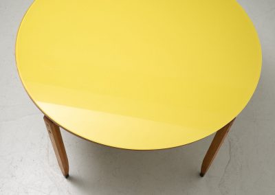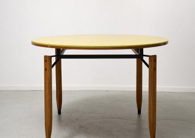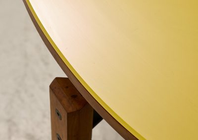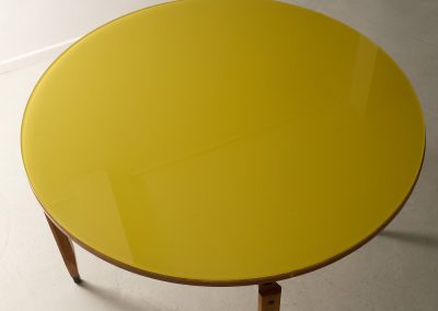 Roberto Aloi yellow glass top and wood architectural legs dining table